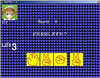 VB5+SP3で作成した 単純なジャンケンゲームです キャラクター画像に使用しているのは すっかりおなじみとなった造型王2を 使用しております これは造型王コンテストがあったので 作ってみたゲームです コンテストというものに 初めて応募してみました |